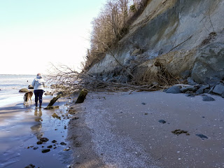 We also had a blowout tide, the lowest we've seen in quite some time. Georgia and I managed to scramble over the big tree down across the beach (above) and Skye went under.
